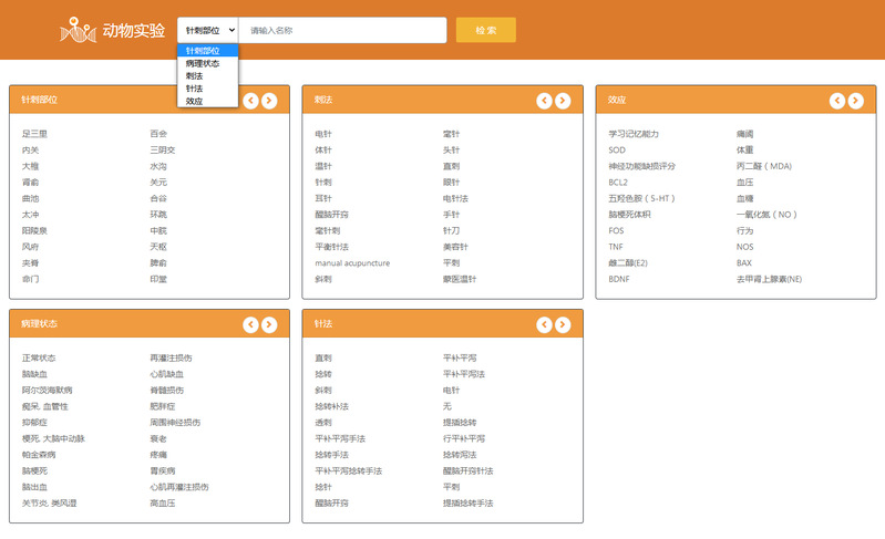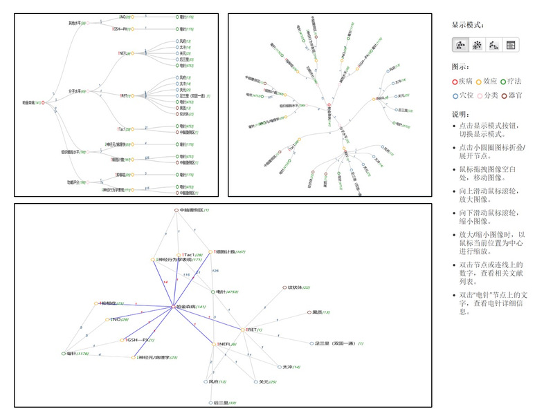 ▲针刺效应数据展示平台通过将详细的穴位刺激干预数据与针刺效应信息相结合进行可视化展示,为科研人员前期筛选文献、了解研究现状、确定研究方向提供辅助,为针刺生物学机制的深入研究提供规范化的数据支持及文献检索和辅助展示研究工具。平台链接http://acupuncture.cintcm.com/index.html
