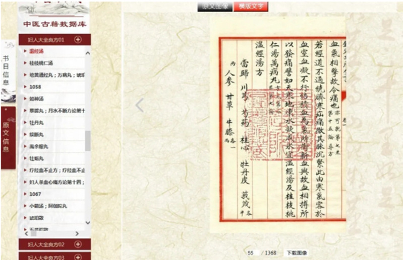 ▲国医典藏是由中国中医科学院中医药信息研究所(图书馆)研发的大型中医古籍全文数据库,Ⅰ期精选了先秦至清末民国的历代典籍500种(包括综合性丛书20种),2500册。所选书目按《中国中医古籍总目》分类法分类,内容涉及医经、医理、诊断、伤寒金匮、针灸推拿、本草、方书、临证各科、养生、医案医论医话、医史、综合性著作等12大类、65个二级类目。